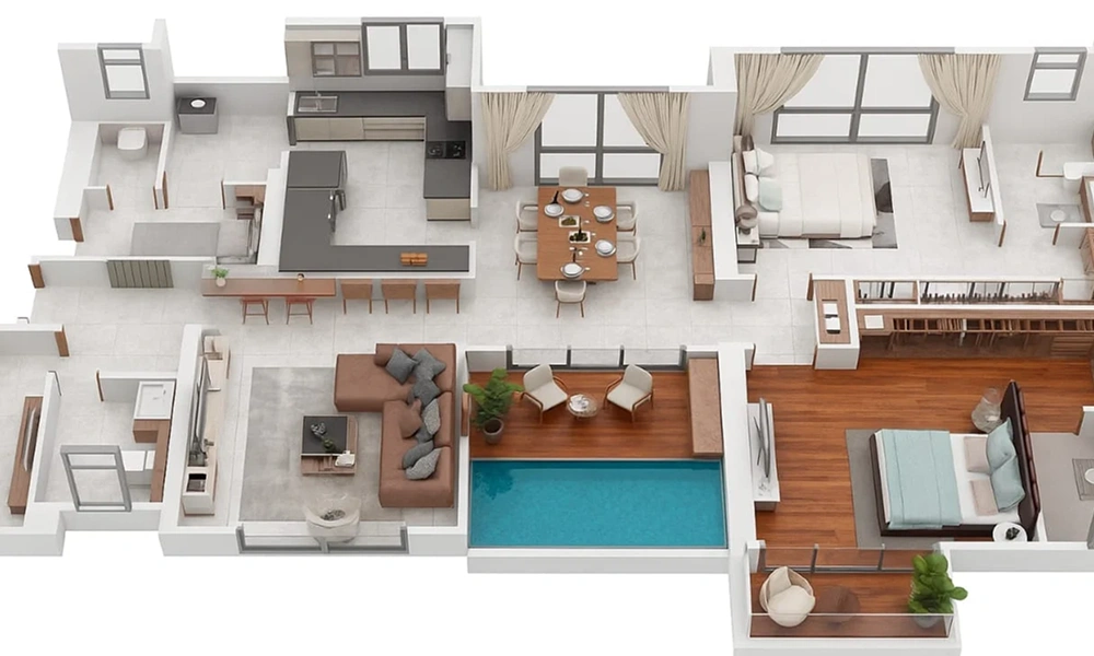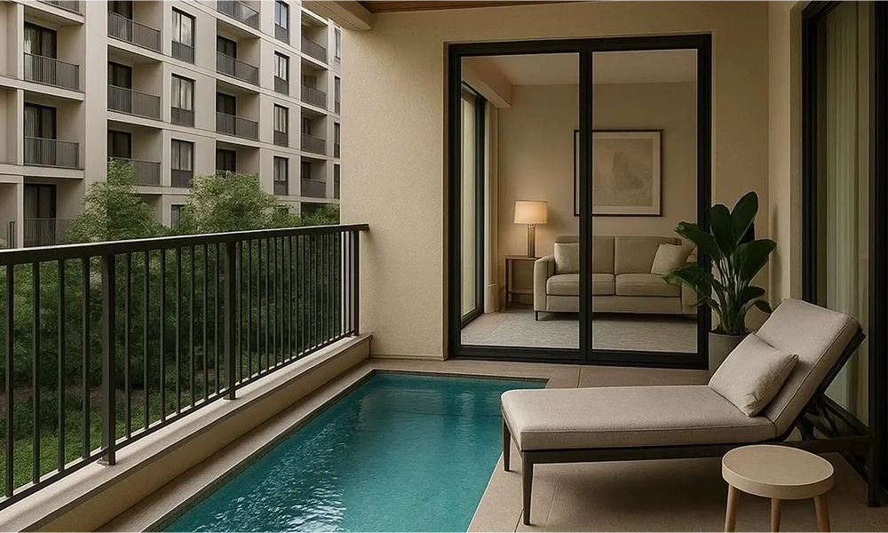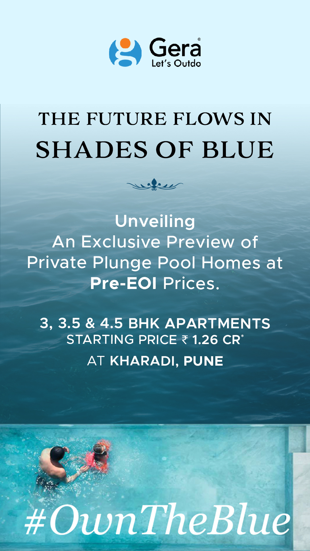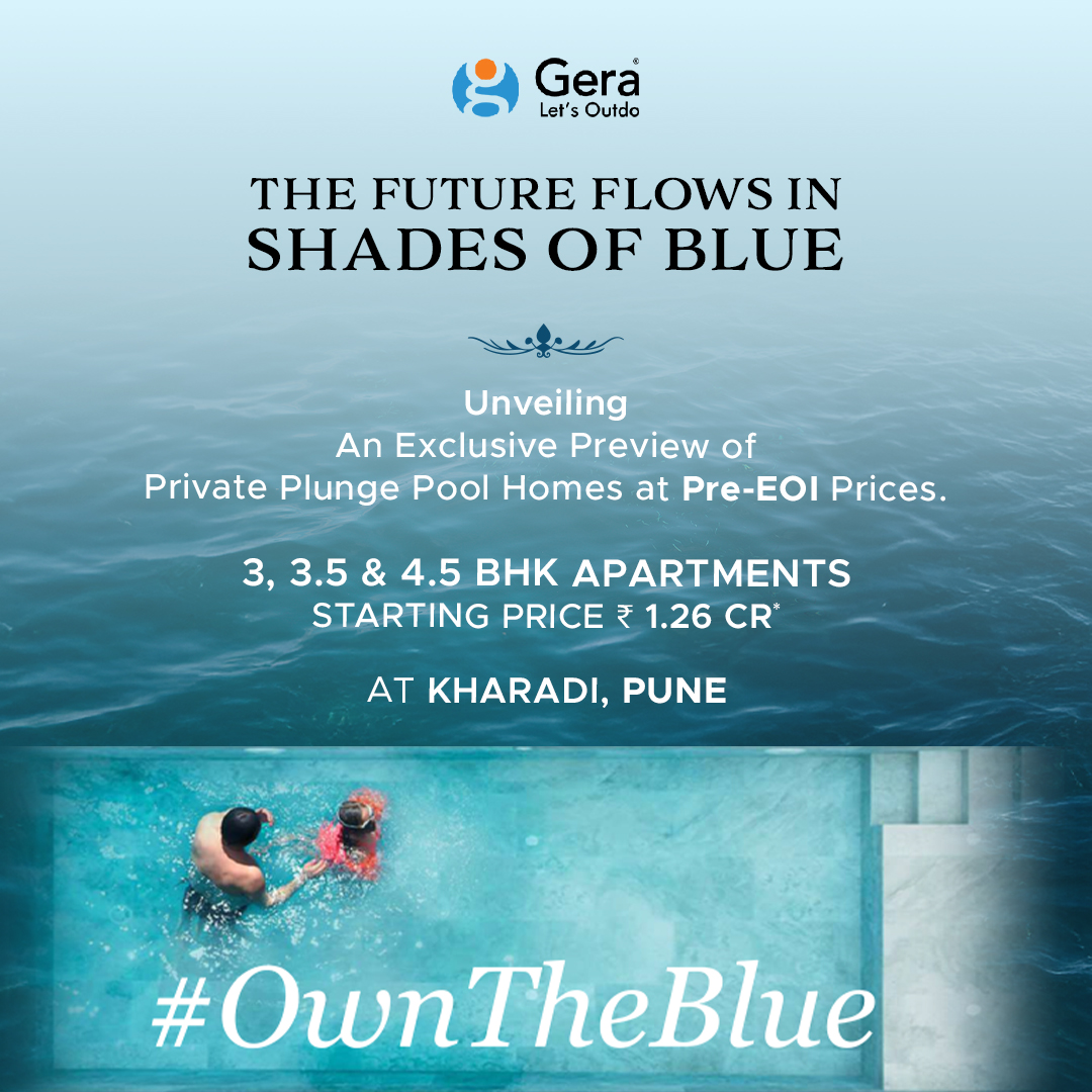 Gera Own The Blue presents an exceptional living experience in East Kharadi — an iconic community offering a limited collection of private-pool residences crafted for true exclusivity and wellness-focused luxury. Spread across more than seven acres, the development features expansive three, three-and-a-half and four-and-a-half bedroom homes with grand sit-outs, dual-side open layouts and attached private pools.