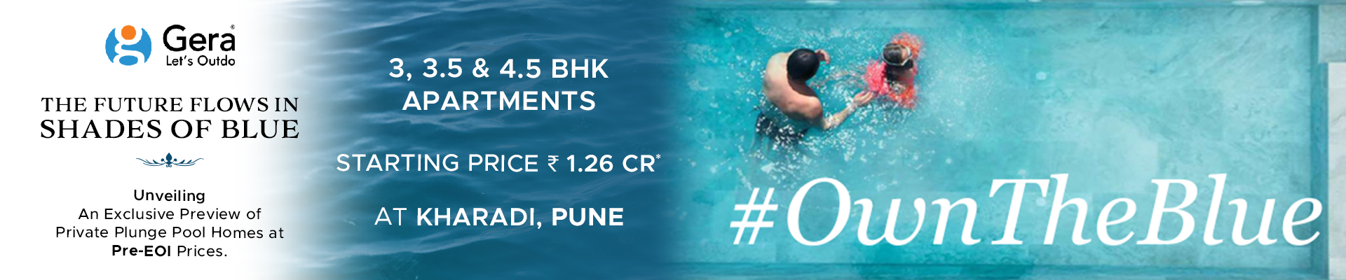 Located in At Kharadi, Pune, Gera Own The Blue by Gera Developments Pvt. Ltd. offers luxurious 3, 3.5 & 4.5 BHK that blend modern design, superior quality, and refined elegance for an elevated living experience.